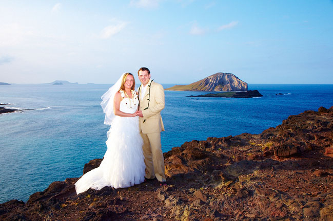 The wedding below started with a Photo Tour to Makapuu Pt. and ended with a sunset ceremony at Portlock Beach.