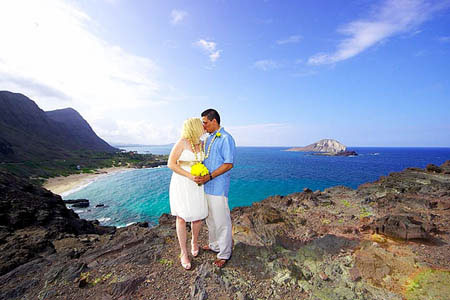 Our top photographer has photographed weddings throughout the State of Hawaii on every island and he says, you will not find more desirable scenic elements, blue ocean, or easy access and was the first to use this spot for wedding couples .